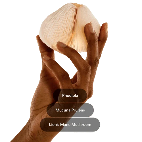 Active Ingredients: Mucuna Pruriens Extract (natural L-Dopa source), 5-HTP, Lion’s Mane Mushroom Extract, Rhodiola Rosea Extract.